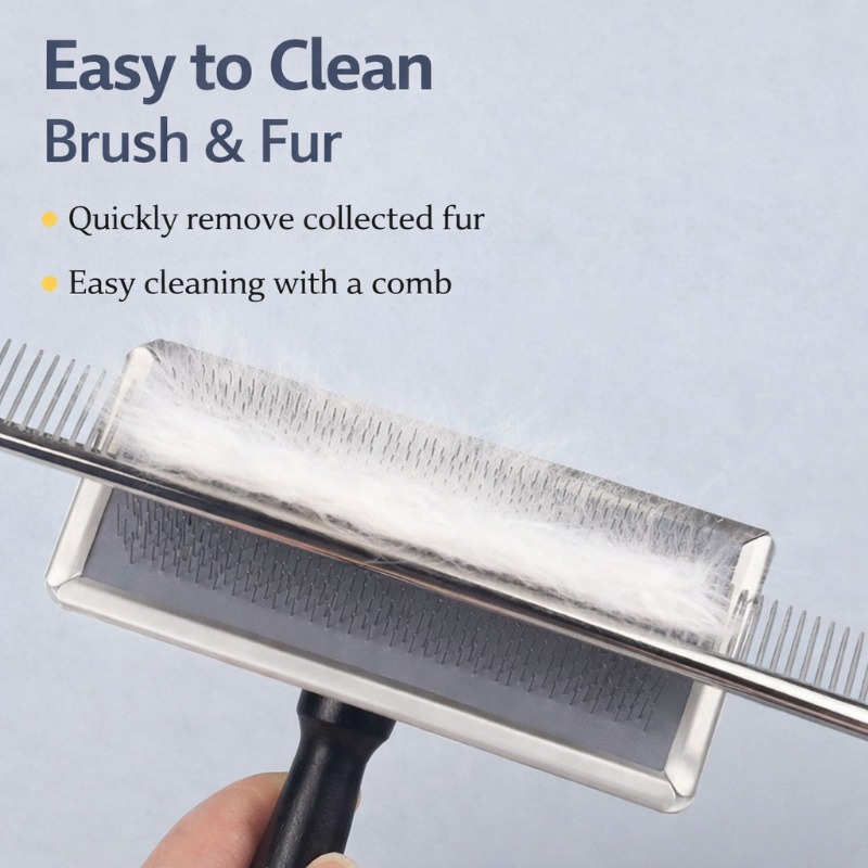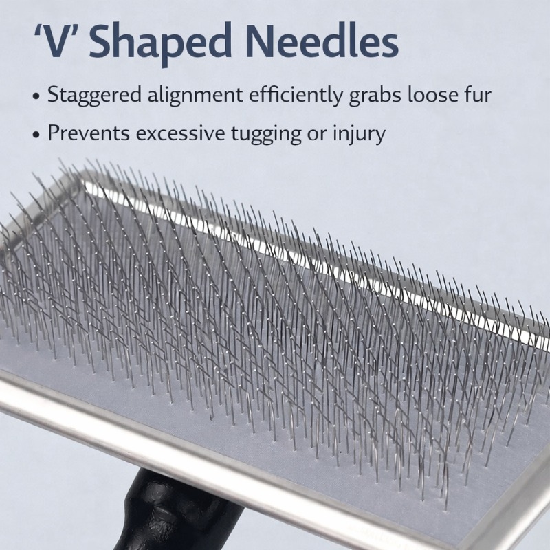 Equipped with fine, dense needles that effortlessly penetrate the undercoat. It effectively removes loose fur, deeply hidden dirt, and stubborn tangles.